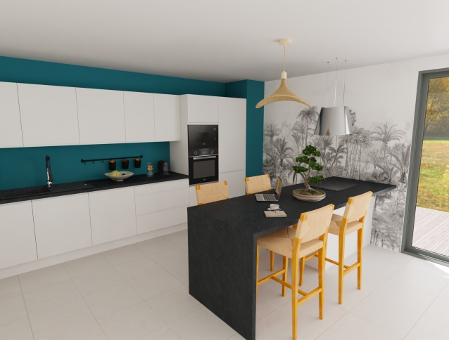 En 2024, les cuisines s'habillent de couleurs audacieuses et de matériaux naturels. Le vert pastel et le bleu nuit s'imposent comme les teintes phares, apportant caractère et profondeur à votre espace. Osez les associer à des tons plus clairs pour créer un contraste saisissant.